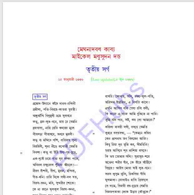 নিচে মেঘনাদবধ কাব্য তৃতীয় সর্গ এর স্ক্রিনশট ও ডাউনলোড লিংক দেওয়া হলোঃ